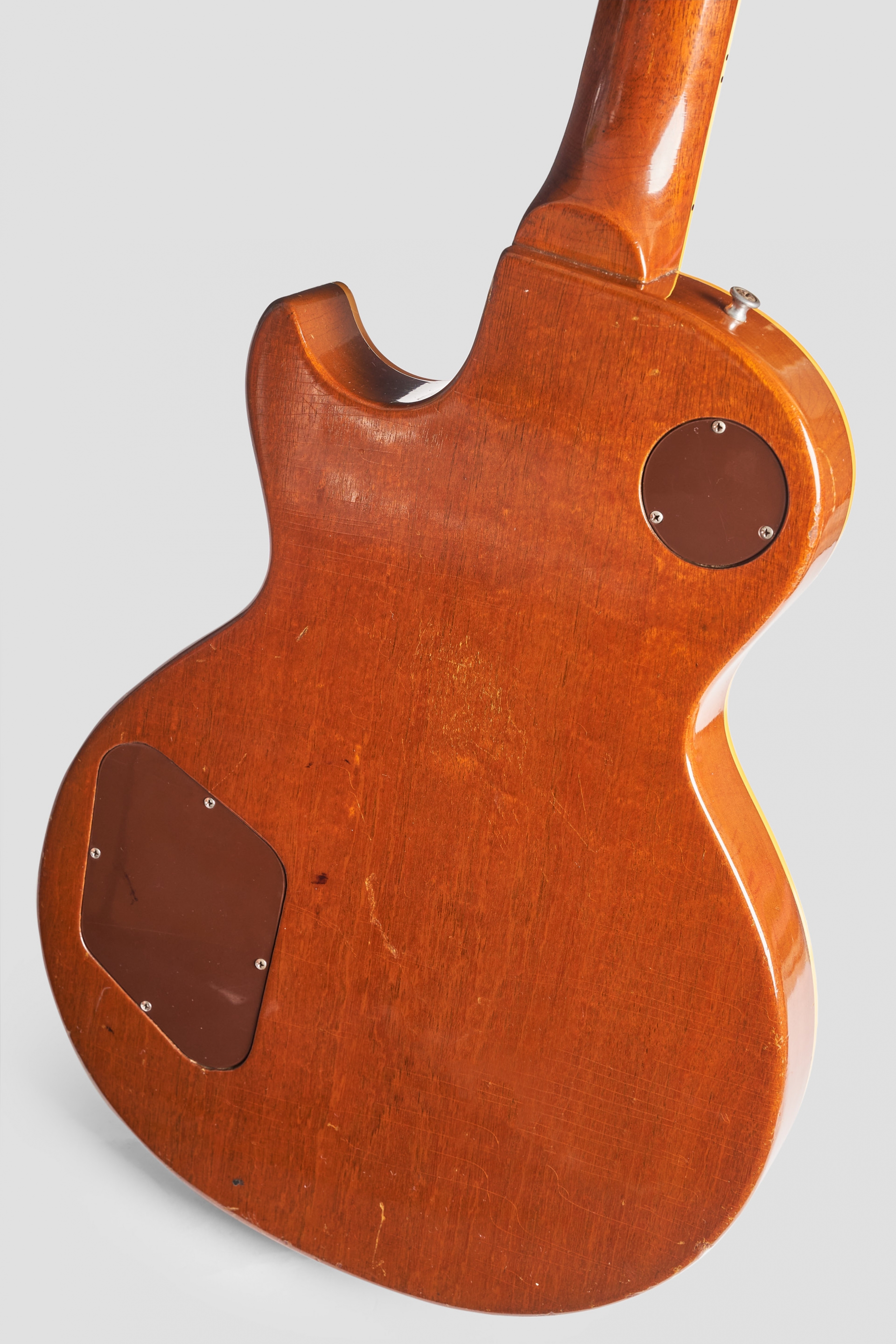 En la construcción vemos un cuerpo y mango de Caoba sólida y un top de Maple-flame por debajo. Primer año de puente wrap-around, dos P-90's sumamente equilibrados, trastera de Brazilian Rosewood y trastes originales.