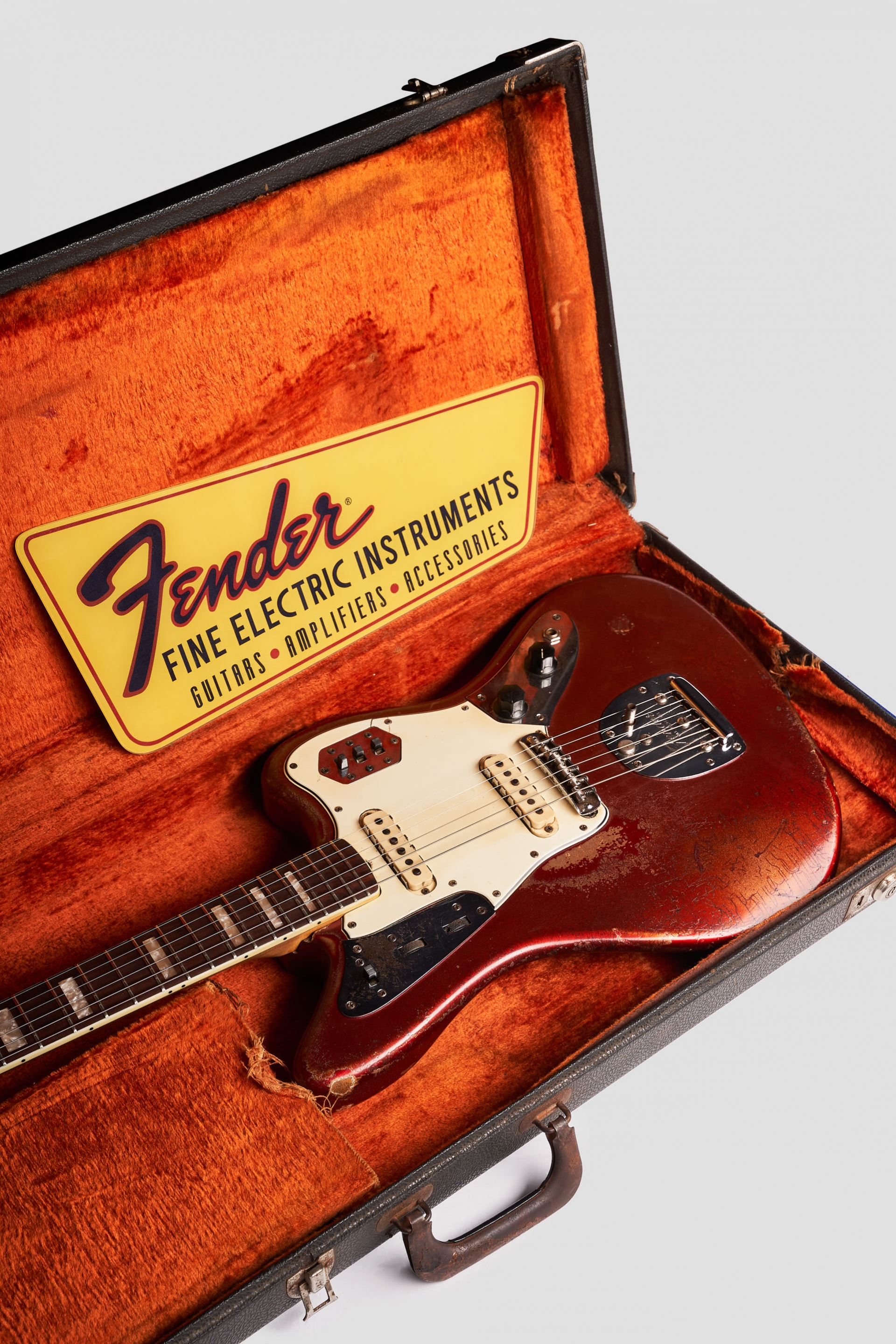 ¡Boom! Vamos directo al grano. Pisa el búnker por primera vez en la historia una de nuestras off-set favoritas hablamos de esta increíble, fantástica y espectacular Fender Jaguar del año 1966 en un Candy Apple Red finish w/ matching headstock.