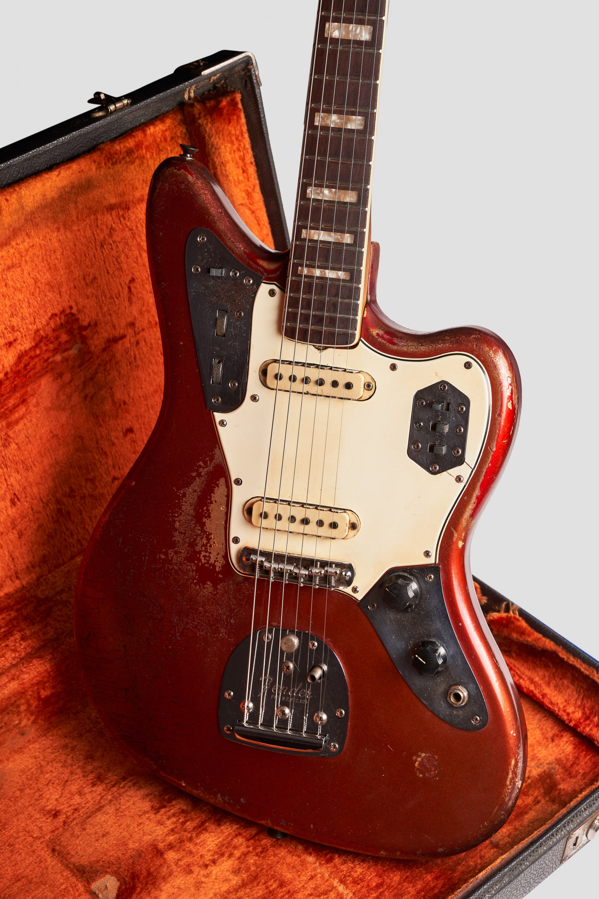 En 1966 Fender decidió reemplazar los dot inlays por los block perloid inlays. Personalmente opino que quedan increíbles tanto en las Jaguar como en las Jazzmaster.