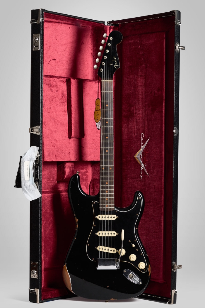En los pick-ups: 3 single-coil 'grey-bottom' originales sonando increíbles, junto a su pick-guard de tres capas, selector de 3 posiciones, x1 vol & x2 tonos y saddles sin corrosión.