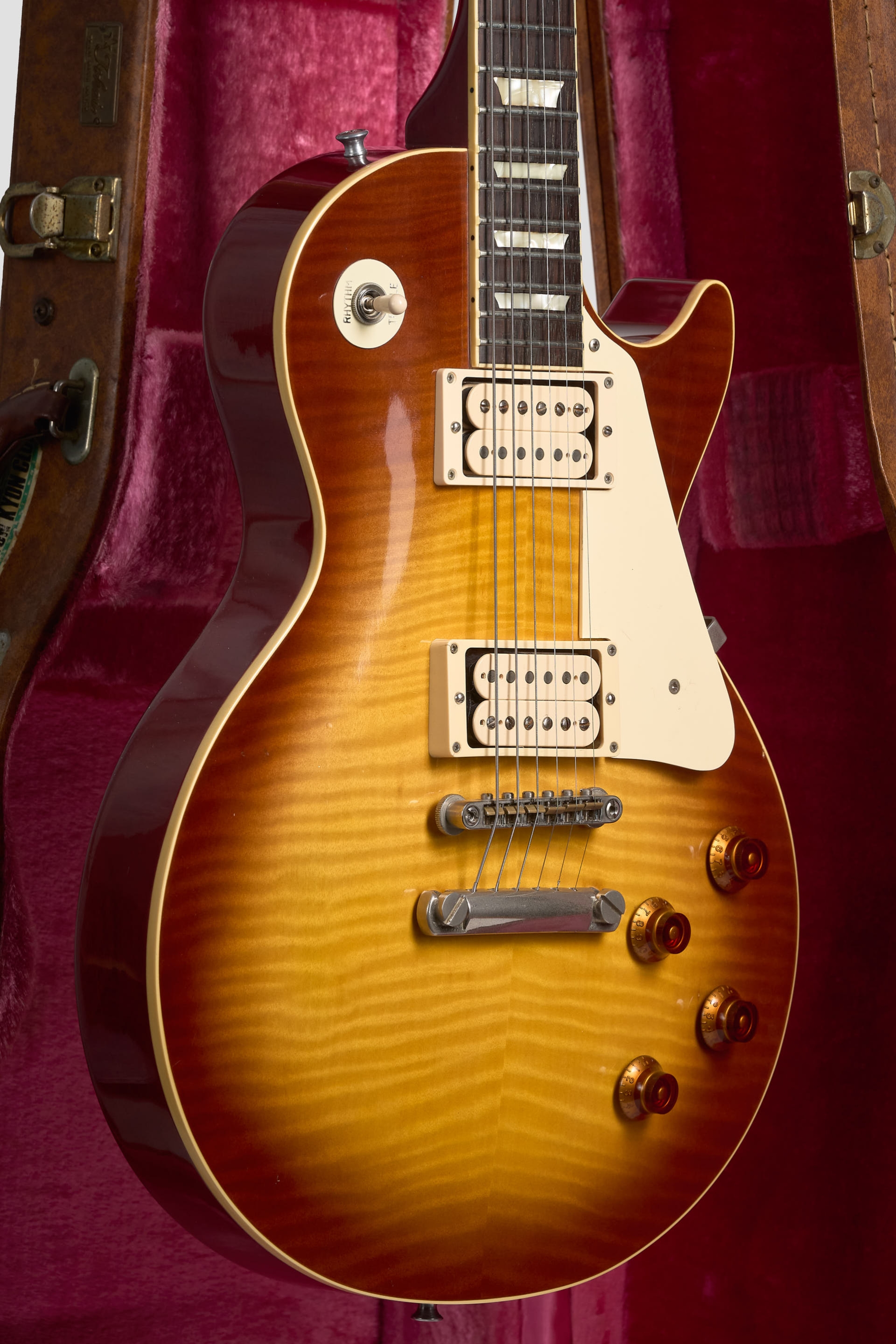 Mientras Gibson indagaba en los cuerpos pancake y los mangos de Maple de tres piezas, Tokai tenía en claro que a la Les Paul había que fabricarla como en los 50’s, por esa razón propone una construcción de Caoba en el cuerpo y mango, con un perfil ‘59 perfecto, una tapa de Maple flameada y una terminación en nitrocelulosa.