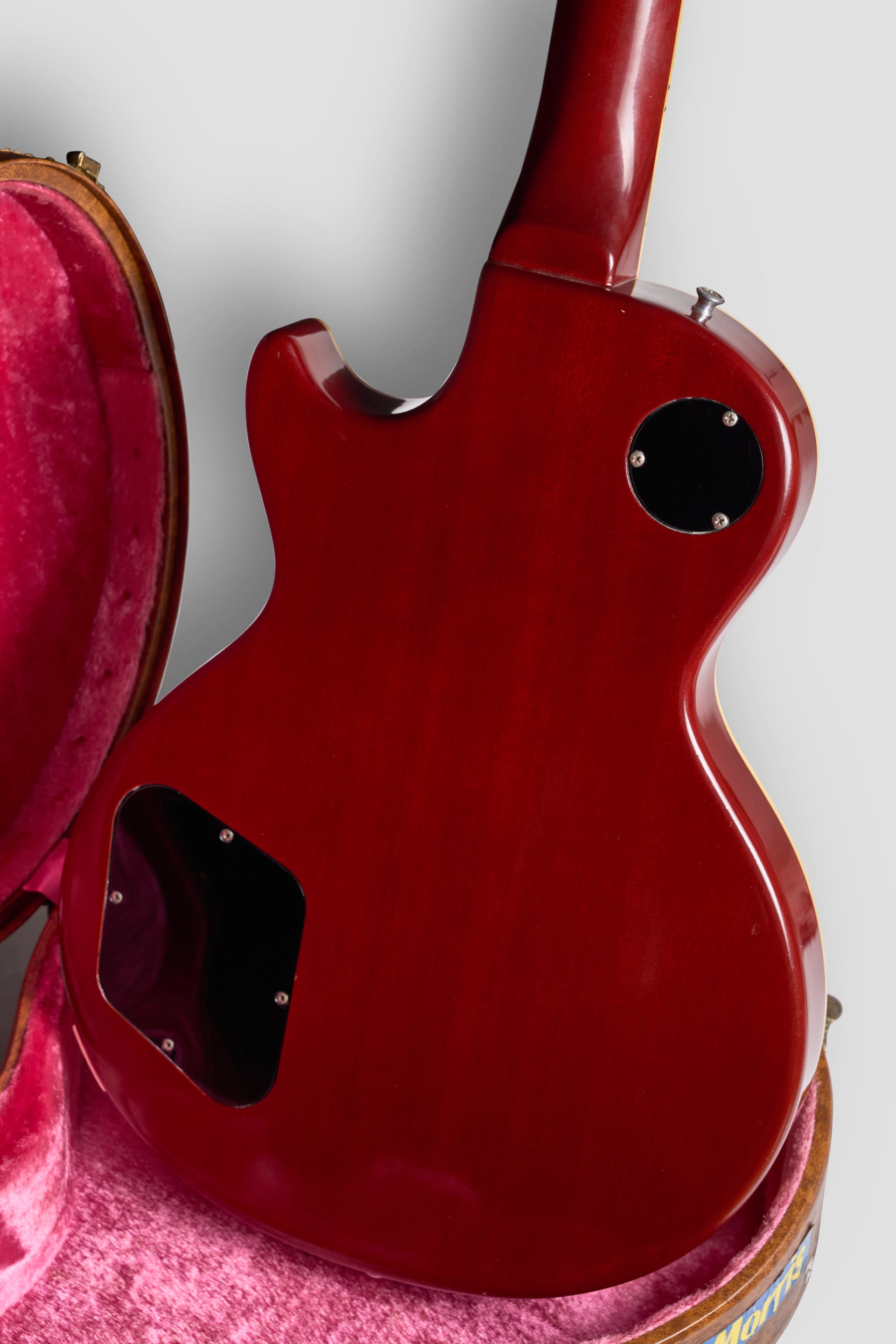 Una medida de nut 1 11/16, un radio de 12” y unos inlays de madre perla. El mango podemos confirmar que tiene un perfil ‘59 perfecto, buenos hombros y buen agarre. No solo la guitarra propone volver a las raices, tambien el estuche simil Lifton de los 50’s marrón con interior pink. ¡Wow!