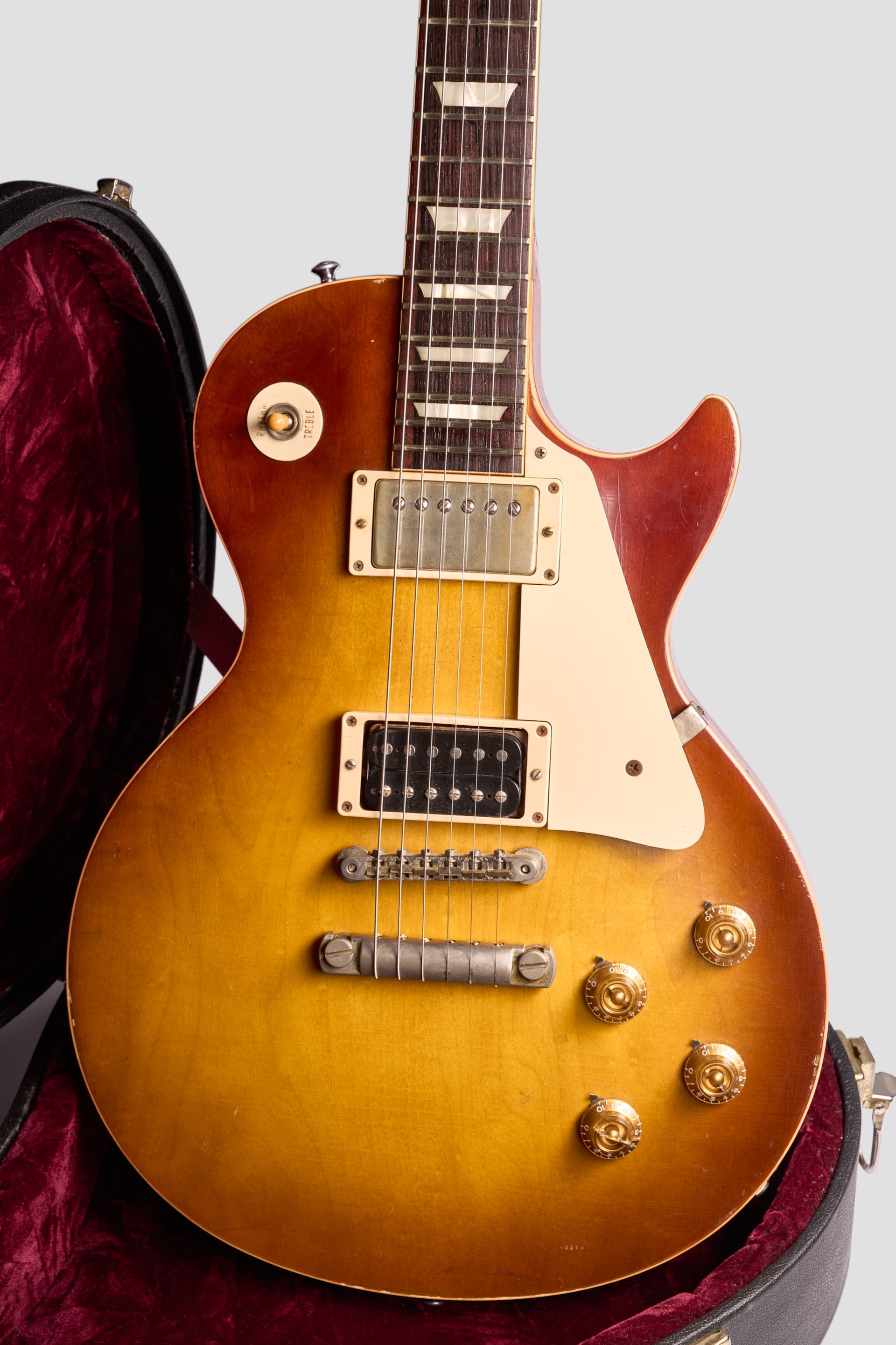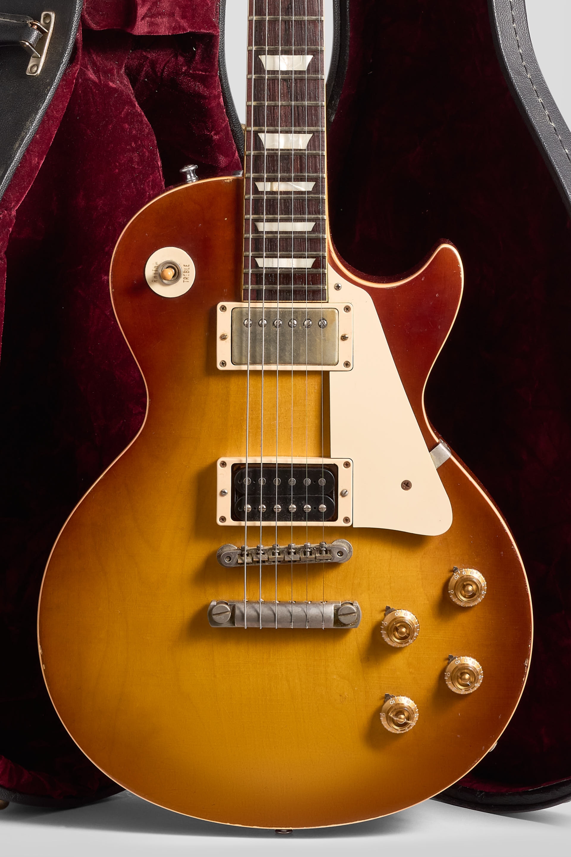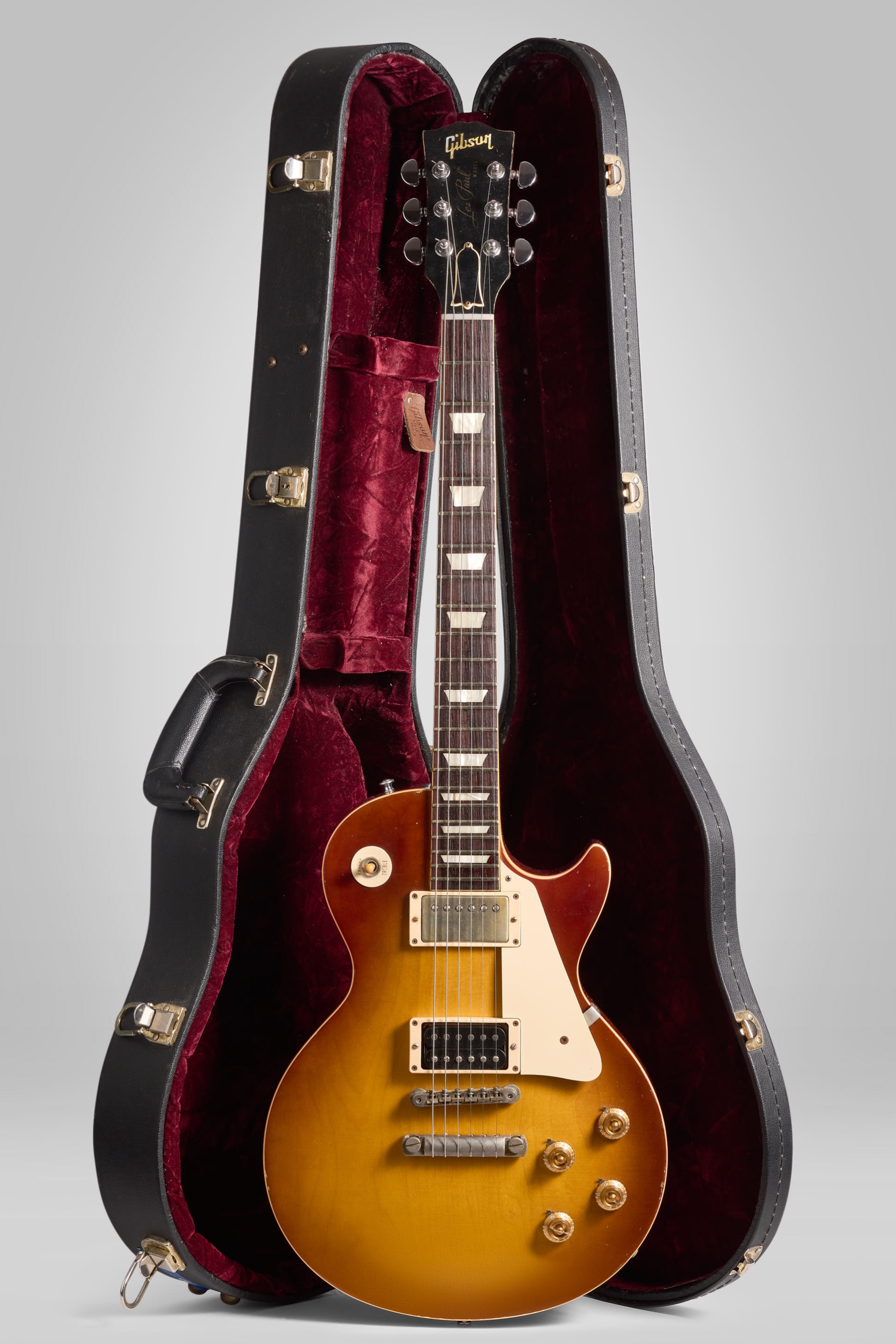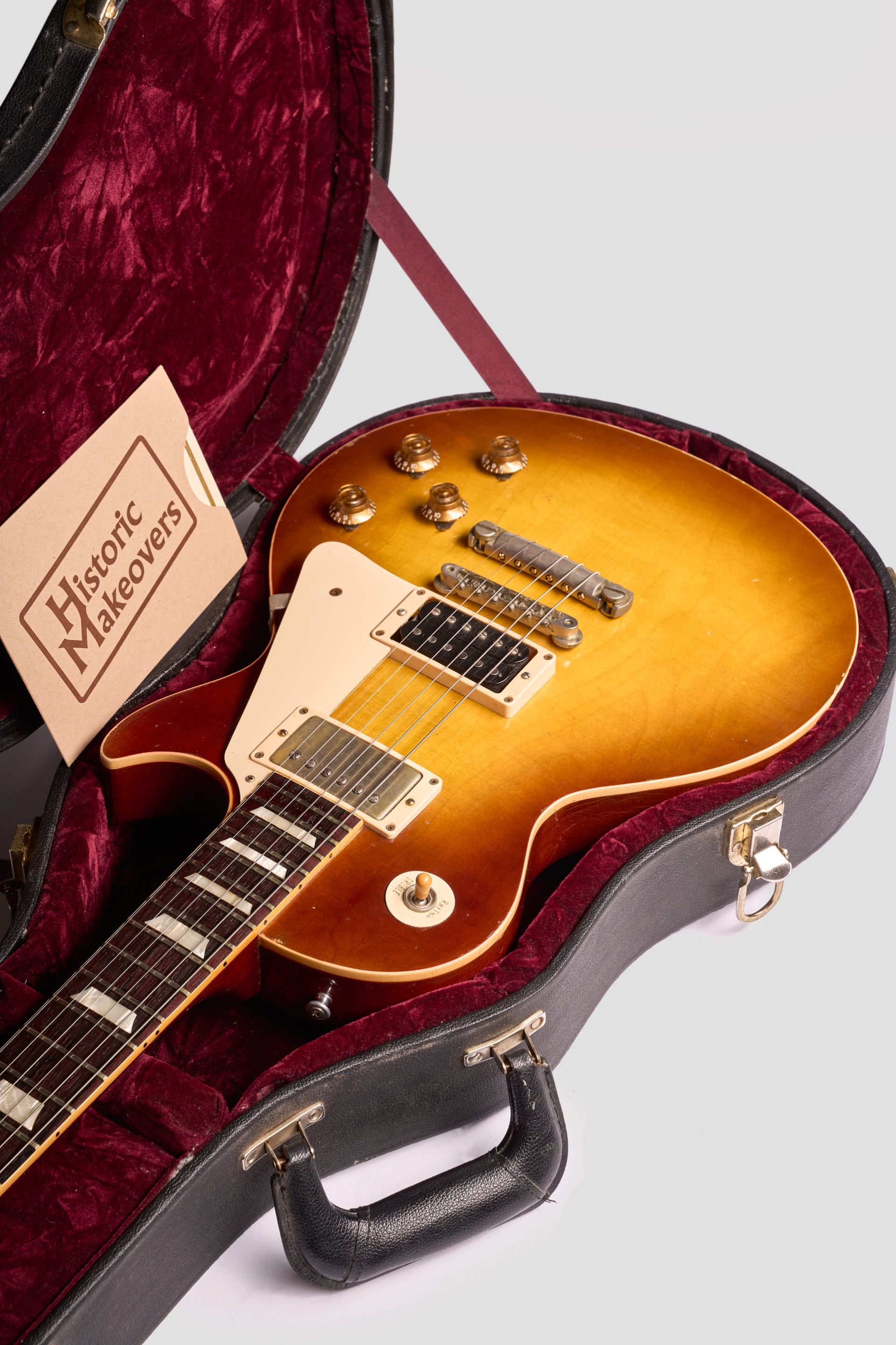 El carved del top fue intensificado, el mango pasó por un proceso de re-shaped y la guitarra repintada en un fino honey-burst en nitro. Los micrófonos originales fueron reemplazados por unos Creamtone PAF sonando increíblemente bien.