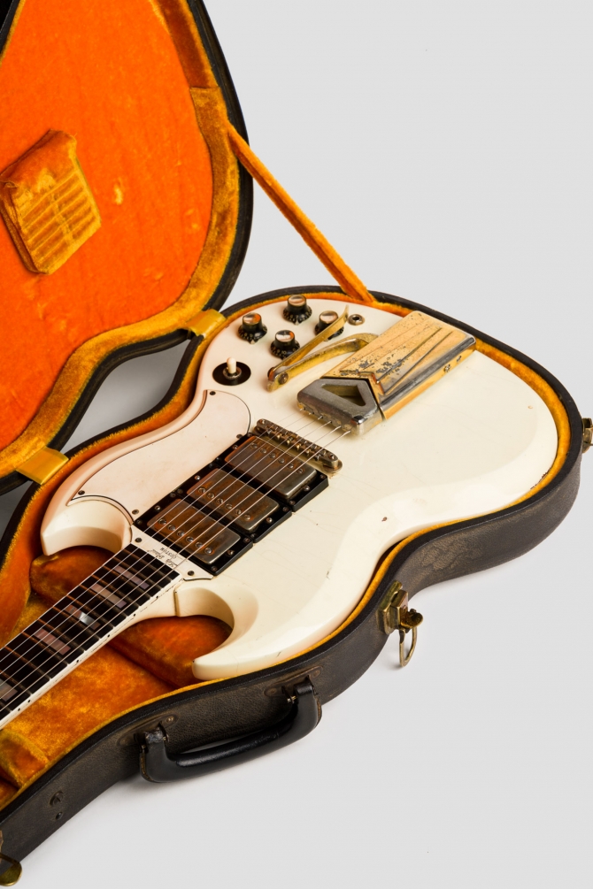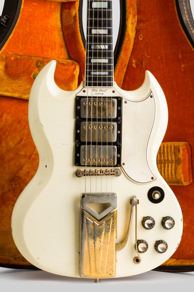 Recordemos que hasta 1963 esta guitarra fue solo llamada "GIbson Les Paul Custom" perteneciendo a la saga de las customs iniciada en 1954 durante la era dorada de la marca. Desde el ´64 en adelante, la guitarra pasó a llamarse SG, cómo la identificamos hoy en día. Tiene instaladas clavijas Grover. Gracias a sus diversas combinaciones de micrófonos, la guitarra cubre todos los espectros y estilos musicales sonando realmente espectacular.