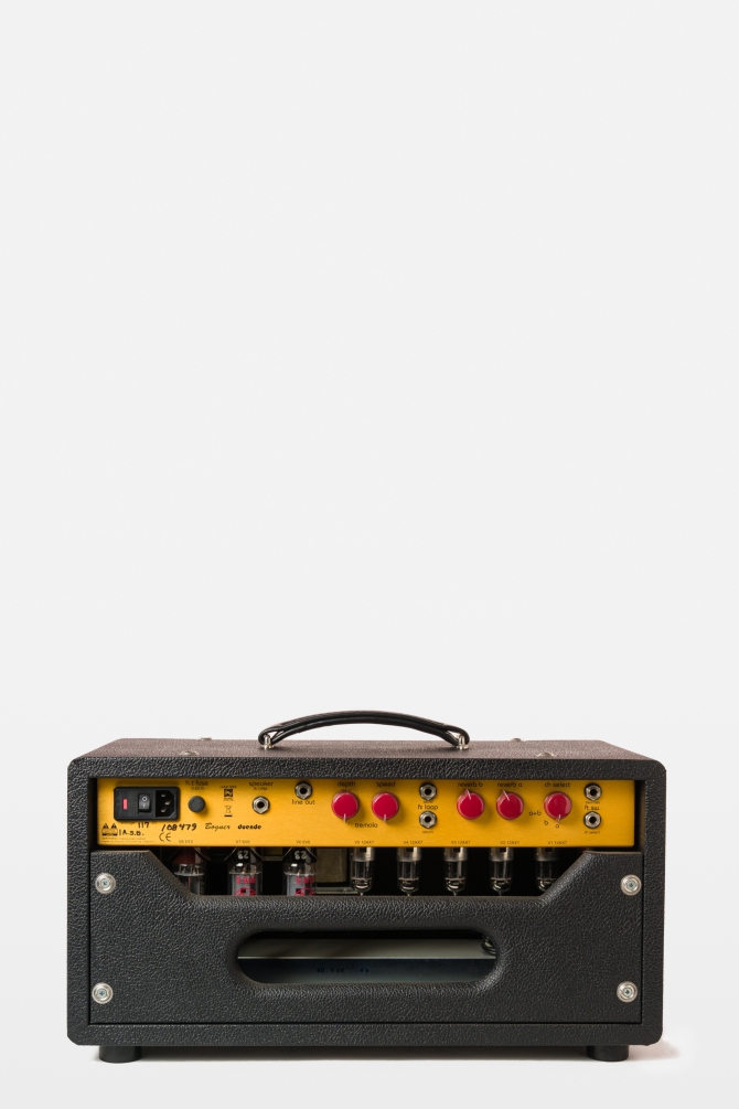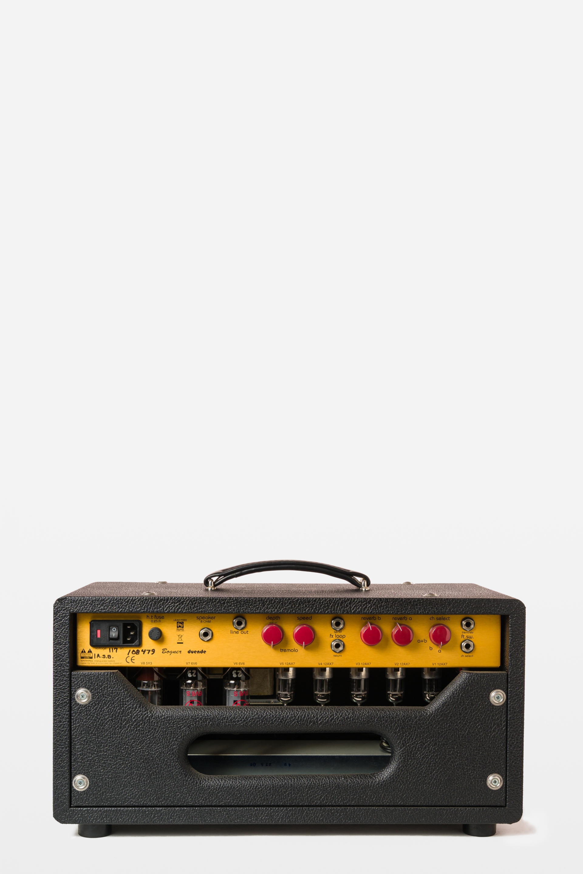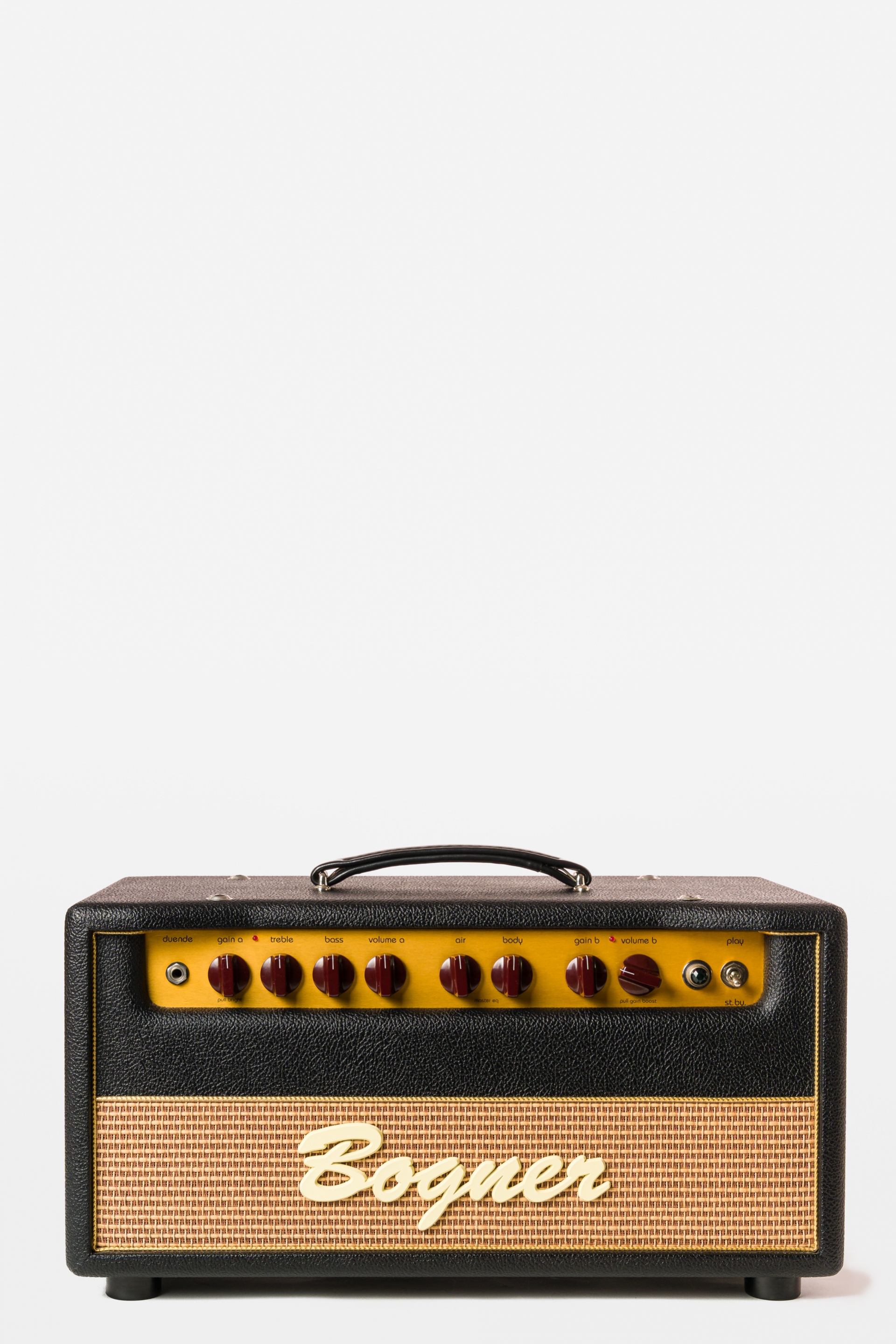 Ya disponible en el búnker tenemos este hermoso cabezal Bogner Duende de 30watts de 6V6 Class AB con una rectifier 5AR4. Posee dos canales, dos gain stages los cuales pueden usarse combinados o separados con el footswitch el cual también tiene un tercer switch para activar el tremolo. Los controles de reverb y el tremolo están ubicados en la parte trasera del cabezal.