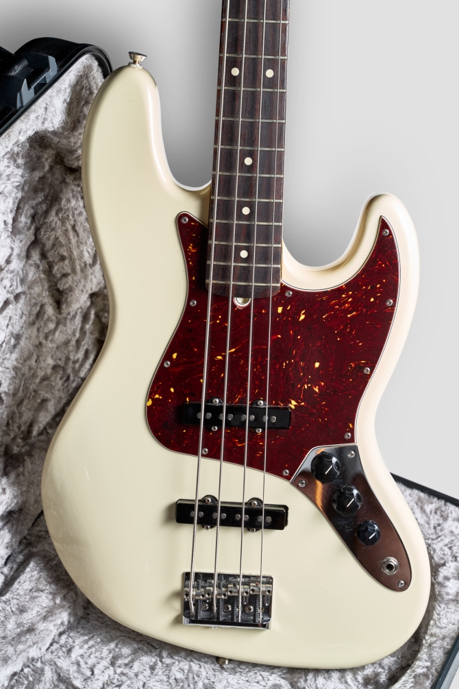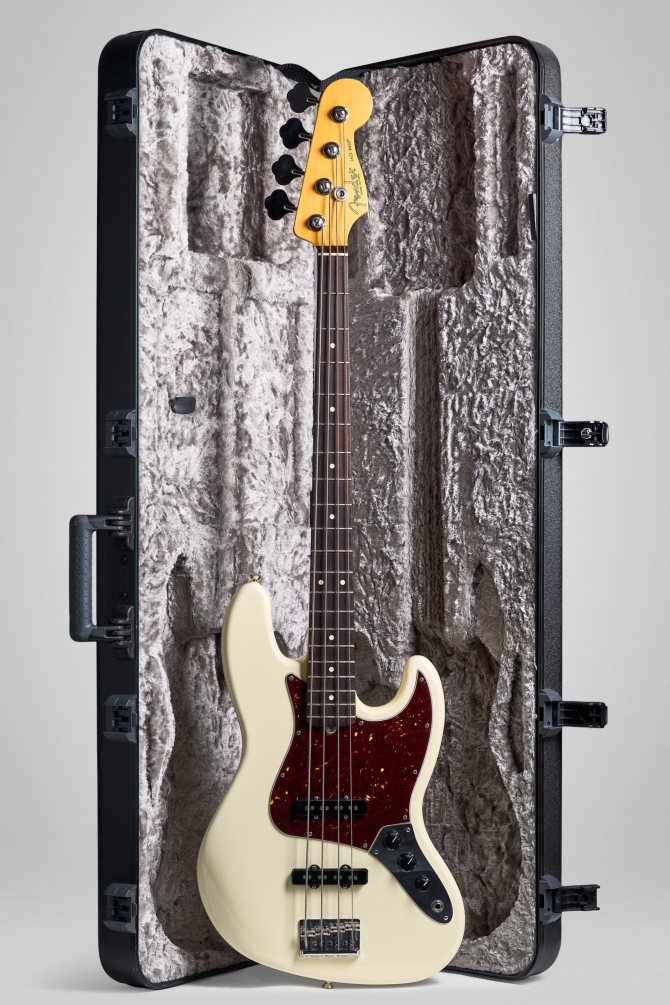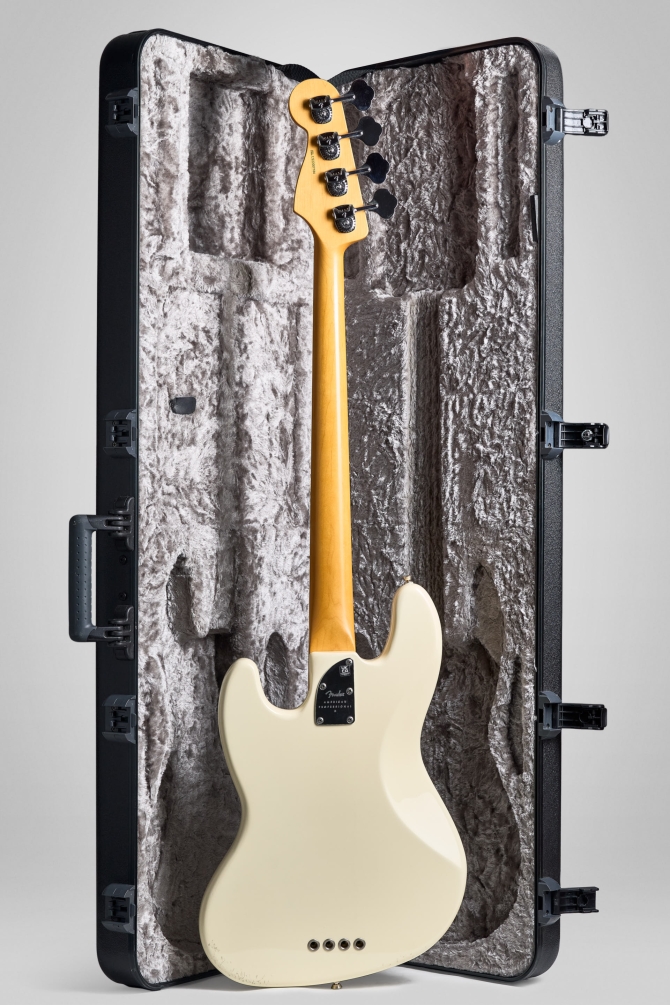 El Jazzbass cuenta con un cuerpo de Alder, un mango de Maple con un perfil '63, un radio de 9.5" y dos micrófonos V-mod II split-coil.