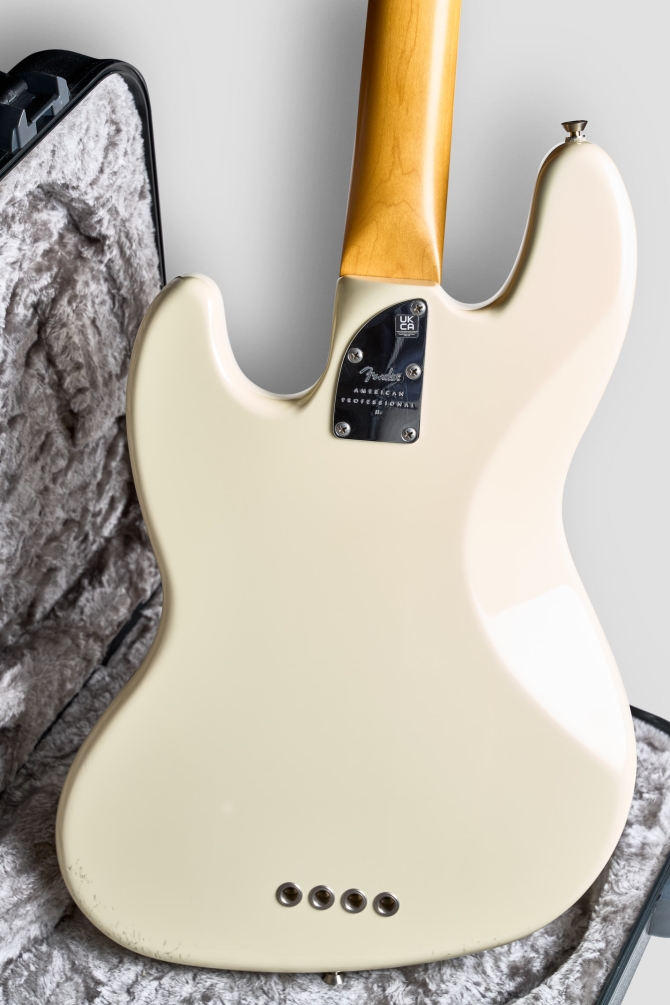 Hoy queremos presentar este Jazzbass American Professional del año 2022 en un Olympic White finish en muy buen estado tanto estético como funcional.