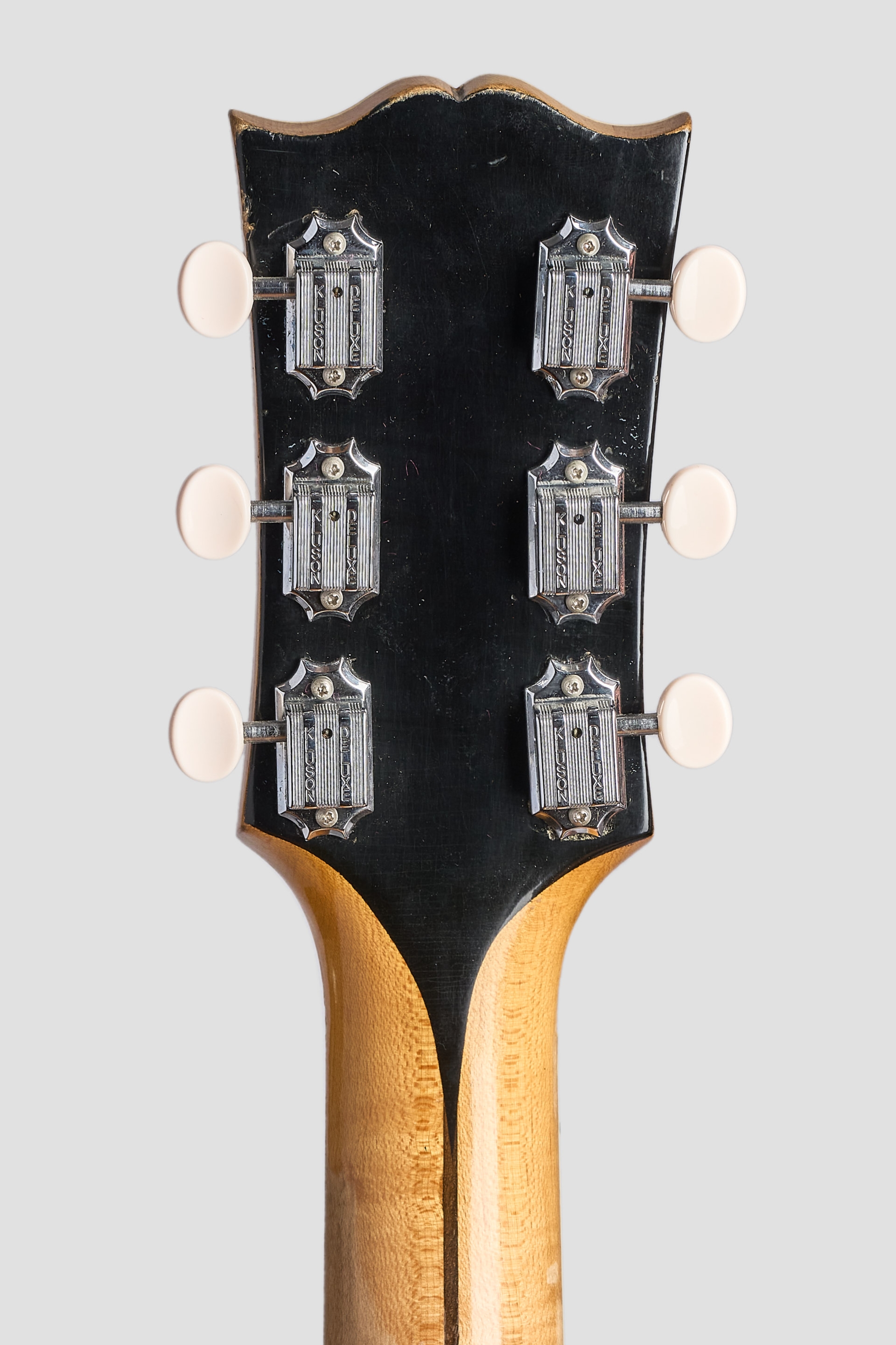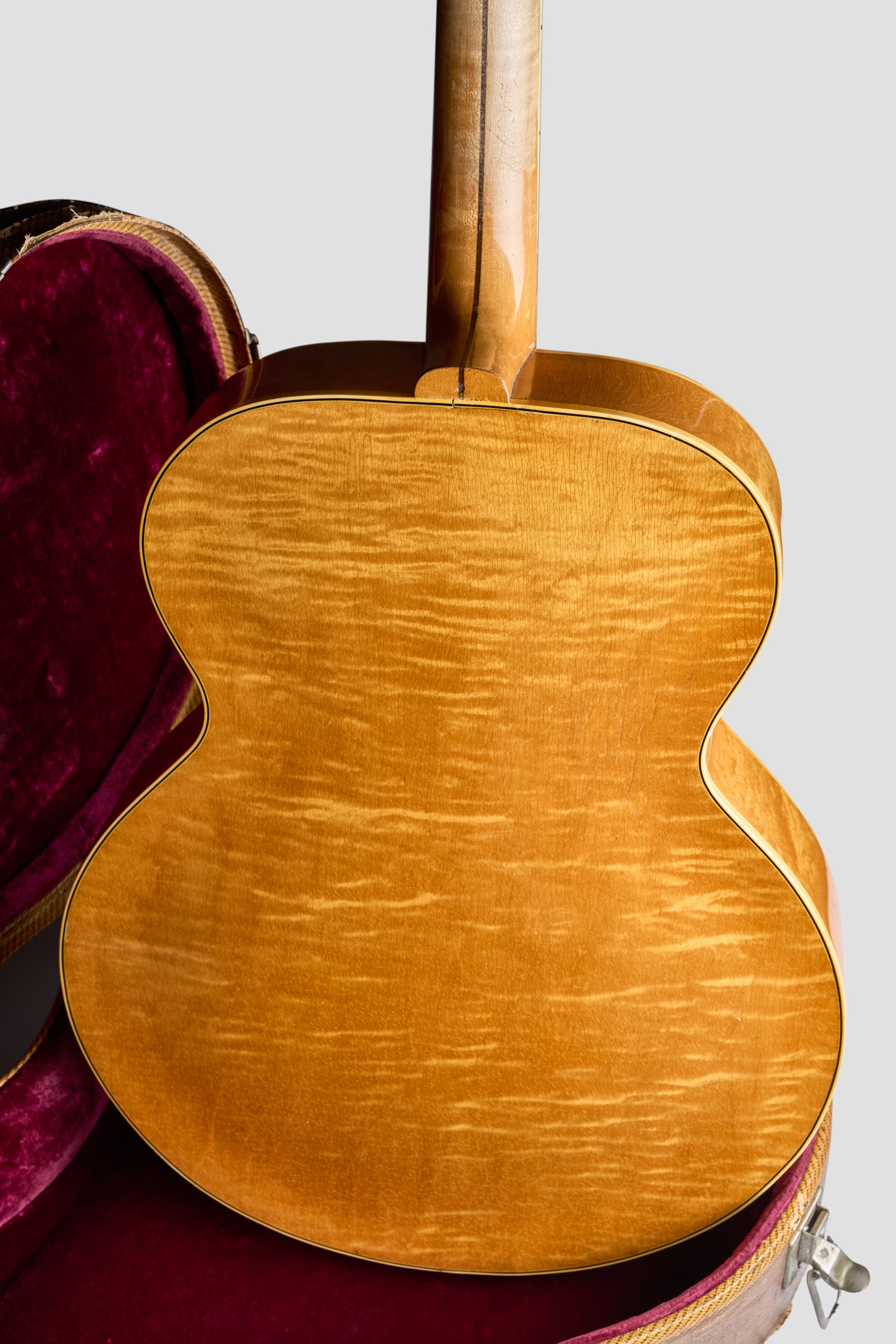 Las clavijas Klusons originales fueron remplazadas por unas clavijas repro-close-back vintage funcionando a la perfección; el puente de Rosewood ajustable, el cordal de nickel, las perillas de baquelita y el pick-guard de celuloide son specs típicos de Gibson de la época.