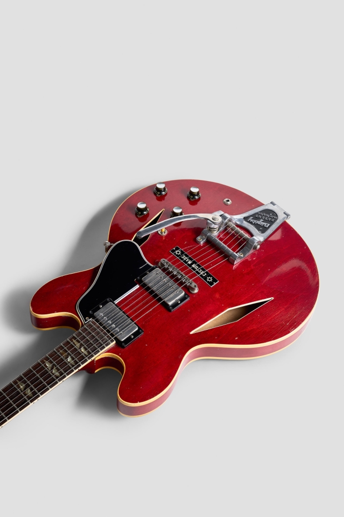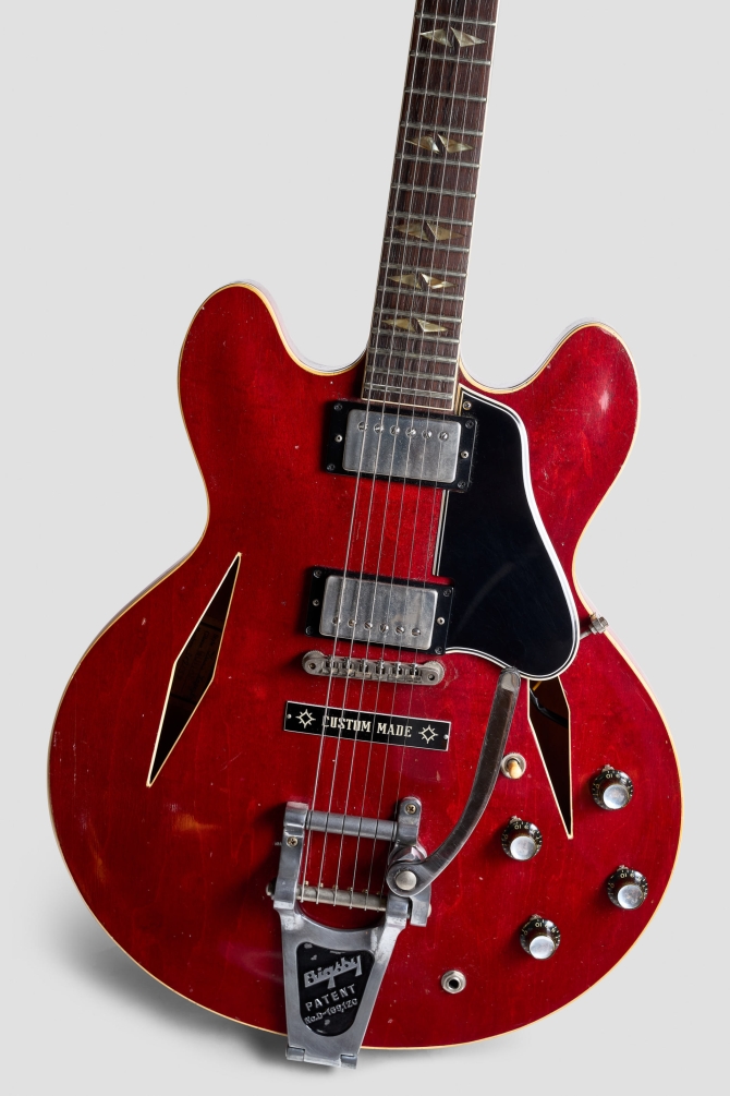 Hoy tenemos para presentarles algo que no vemos seguido, hablamos de esta fantástica Gibson Trini López en un Cherry finish con palanca de Bigsby del año 1965, una de las 320 unidades shippeadas ese año. Wow!