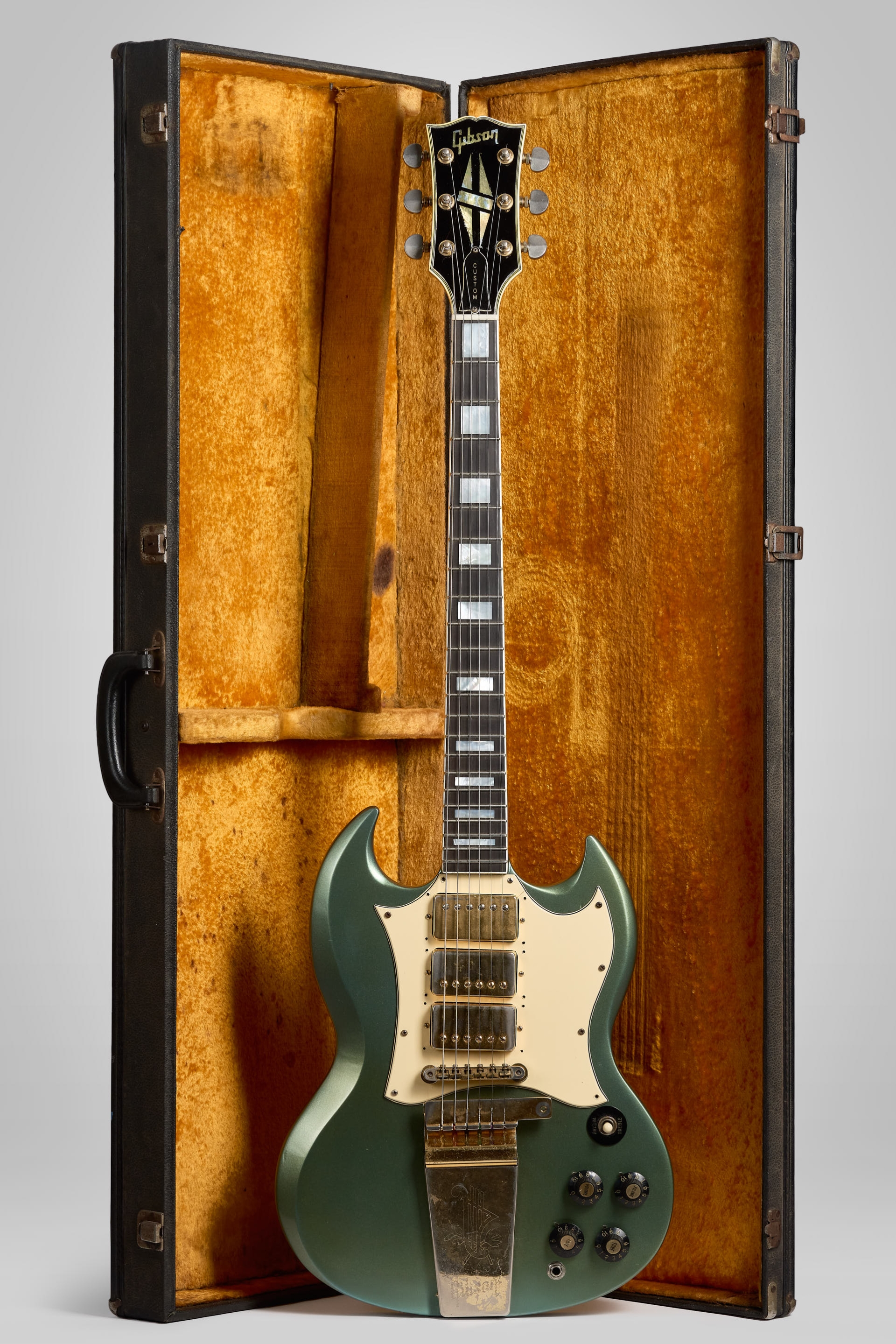 Acaba de aterrizar en el búnker esta Gibson SG Custom del año 1969 en un Pelham Blue / Inverness Green refin.