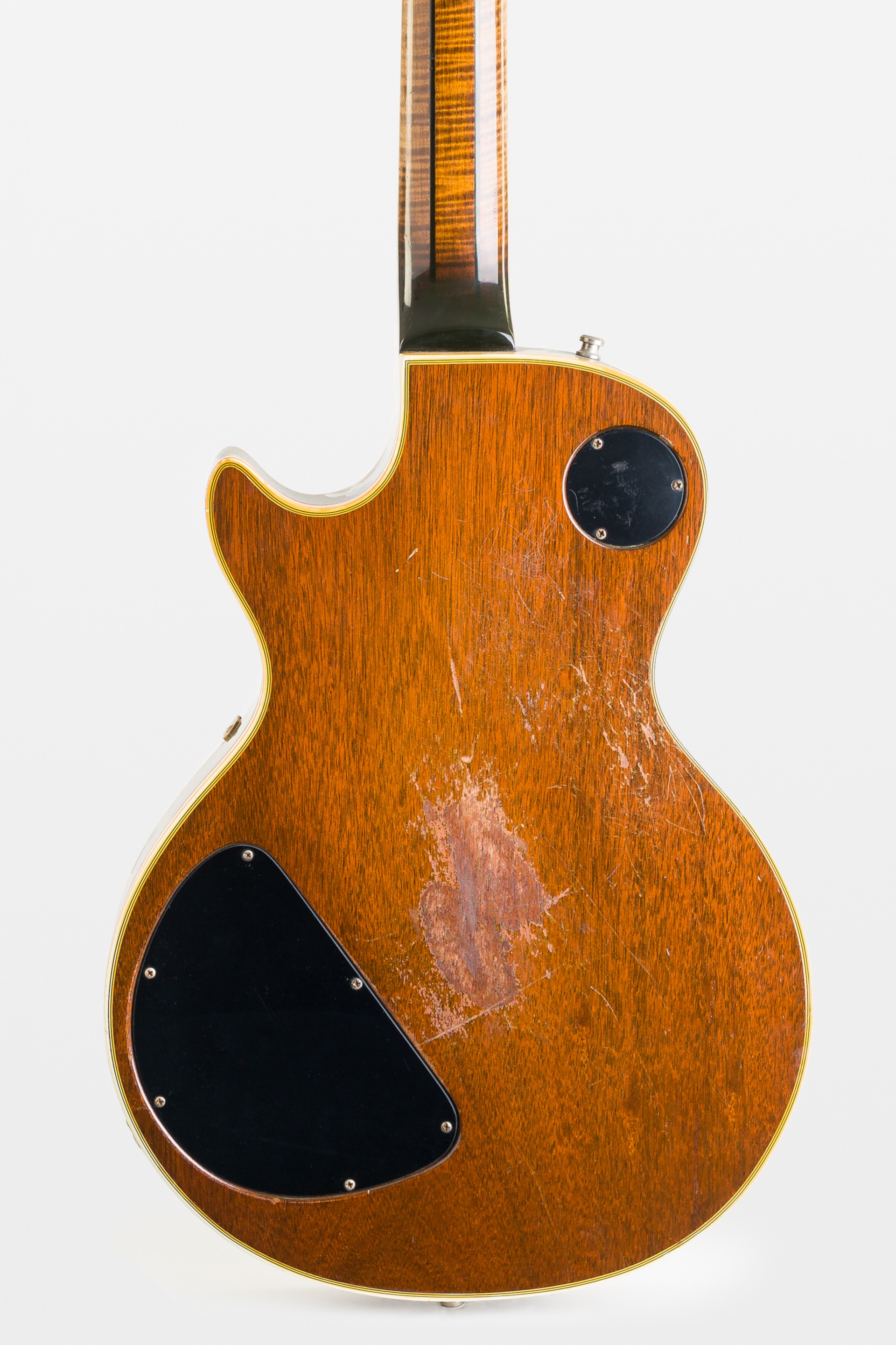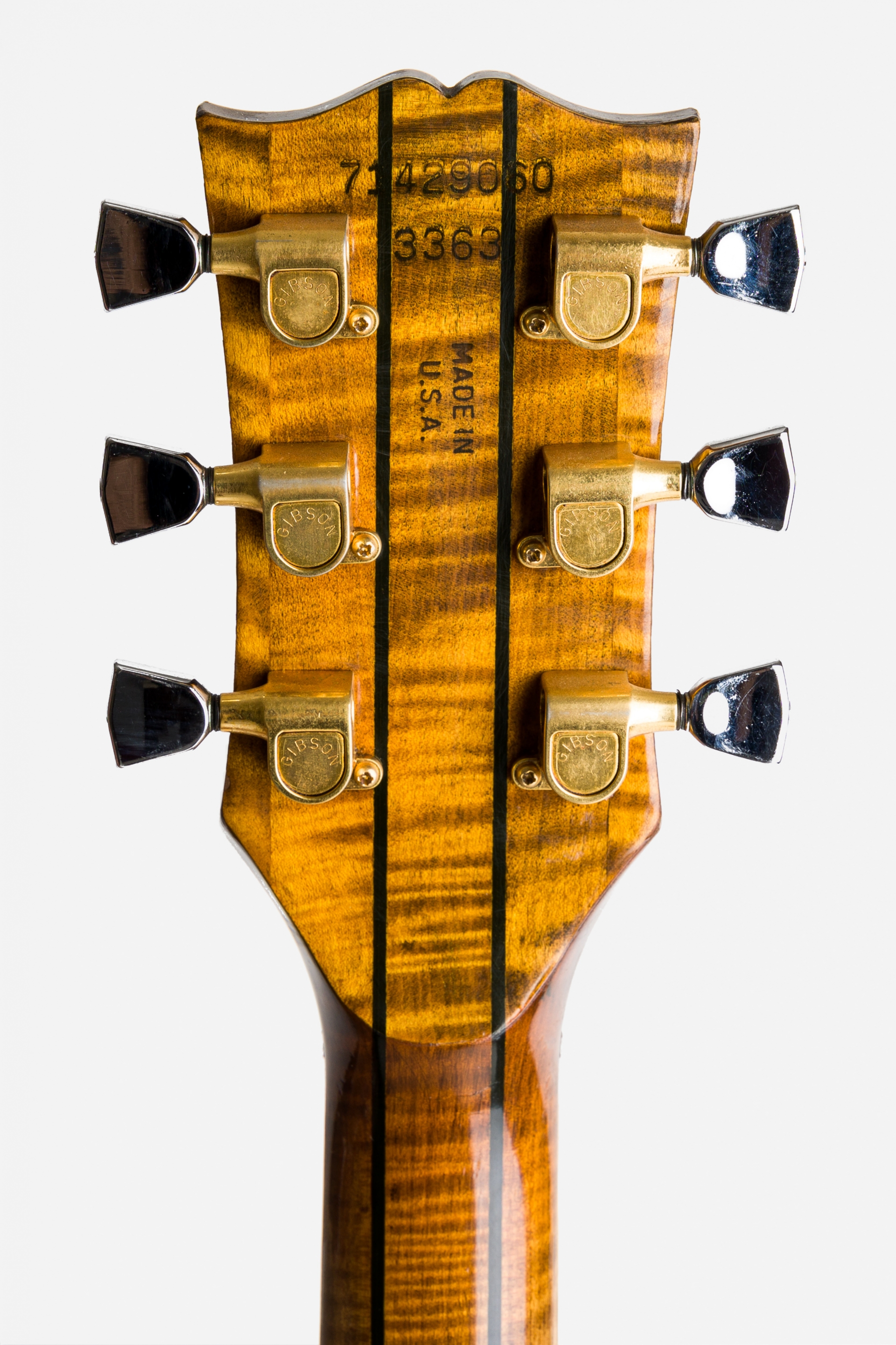 La guitarra se encuentra en muy buen estado (con detalles de buckle-rash en la parte posterior del cuerpo) tanto estético como funcional, en un acabado Tobacco Burst sobre un cuerpo de Caoba de una sola pieza, un top de dos piezas de Maple y un mango de 3 piezas de Flame-Maple (¡wow!) con dos 'Walnut Stripes' en la parte posterior. Un nut width 1 11/16", una escala estandard de 24.75 y un profile 'Medium' con la clásica voluta.