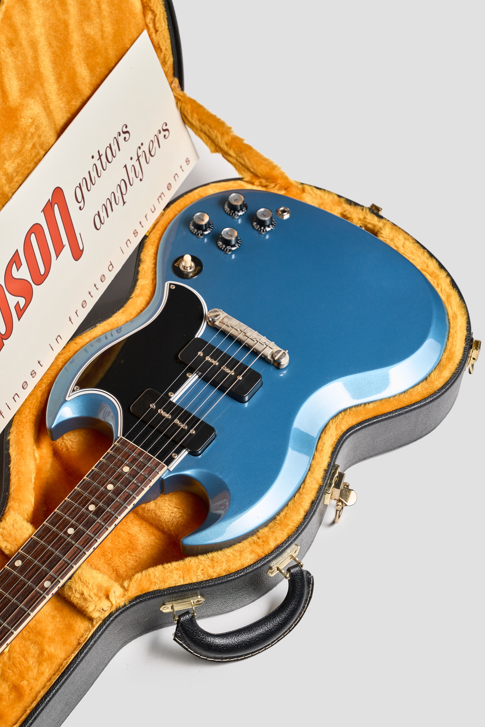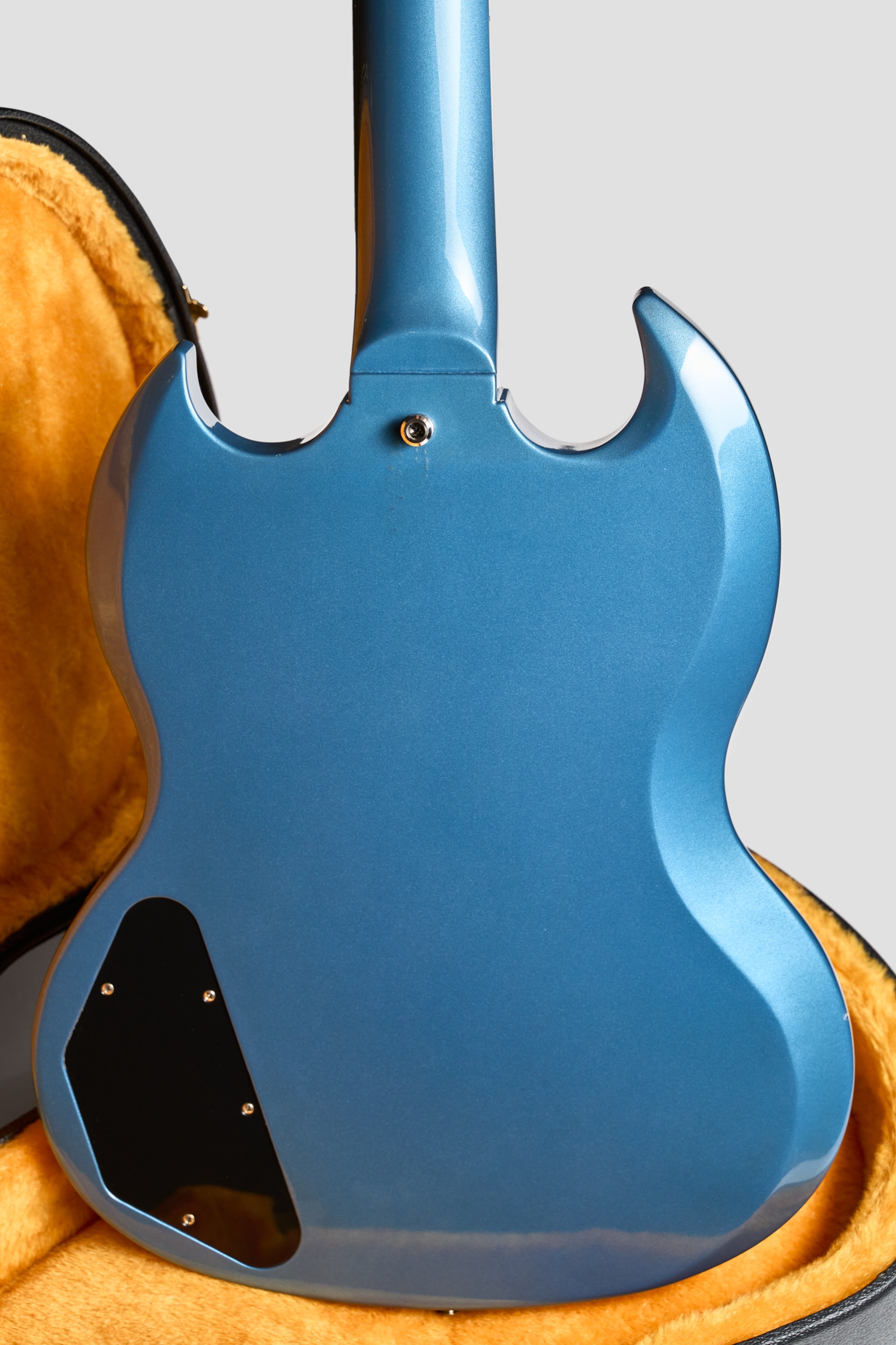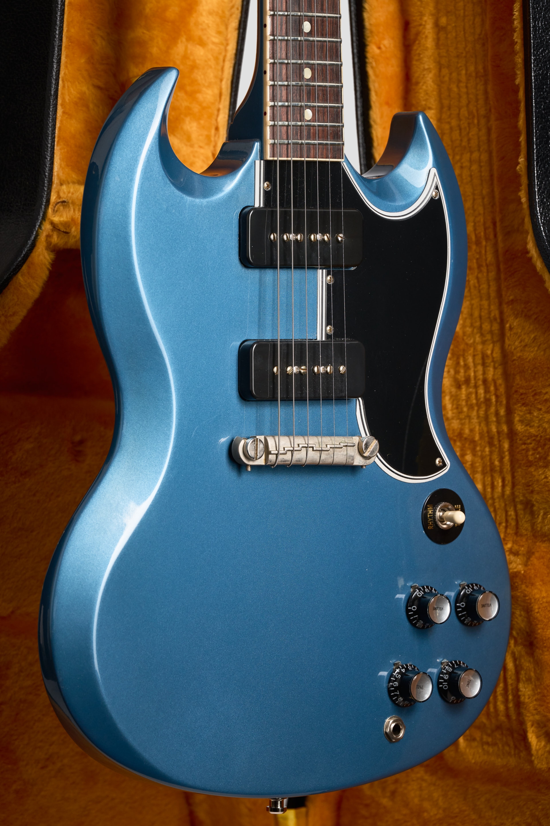 Hablamos de esta fantastica Gibson SG Special 1963 Reissue V.O.S del año 2020 en un Pelham Blue finish. El termino V.O.S se refiere a que mantuvieron punto por punto los vintage original specs.