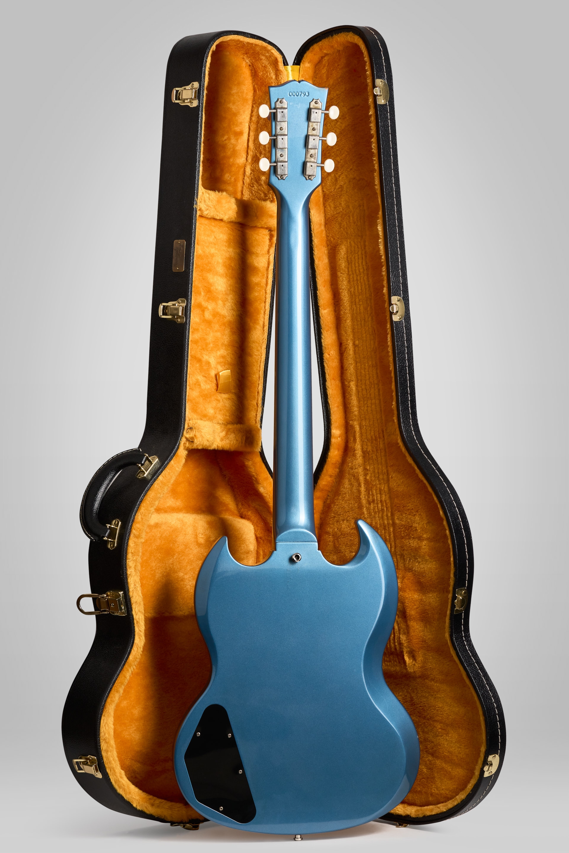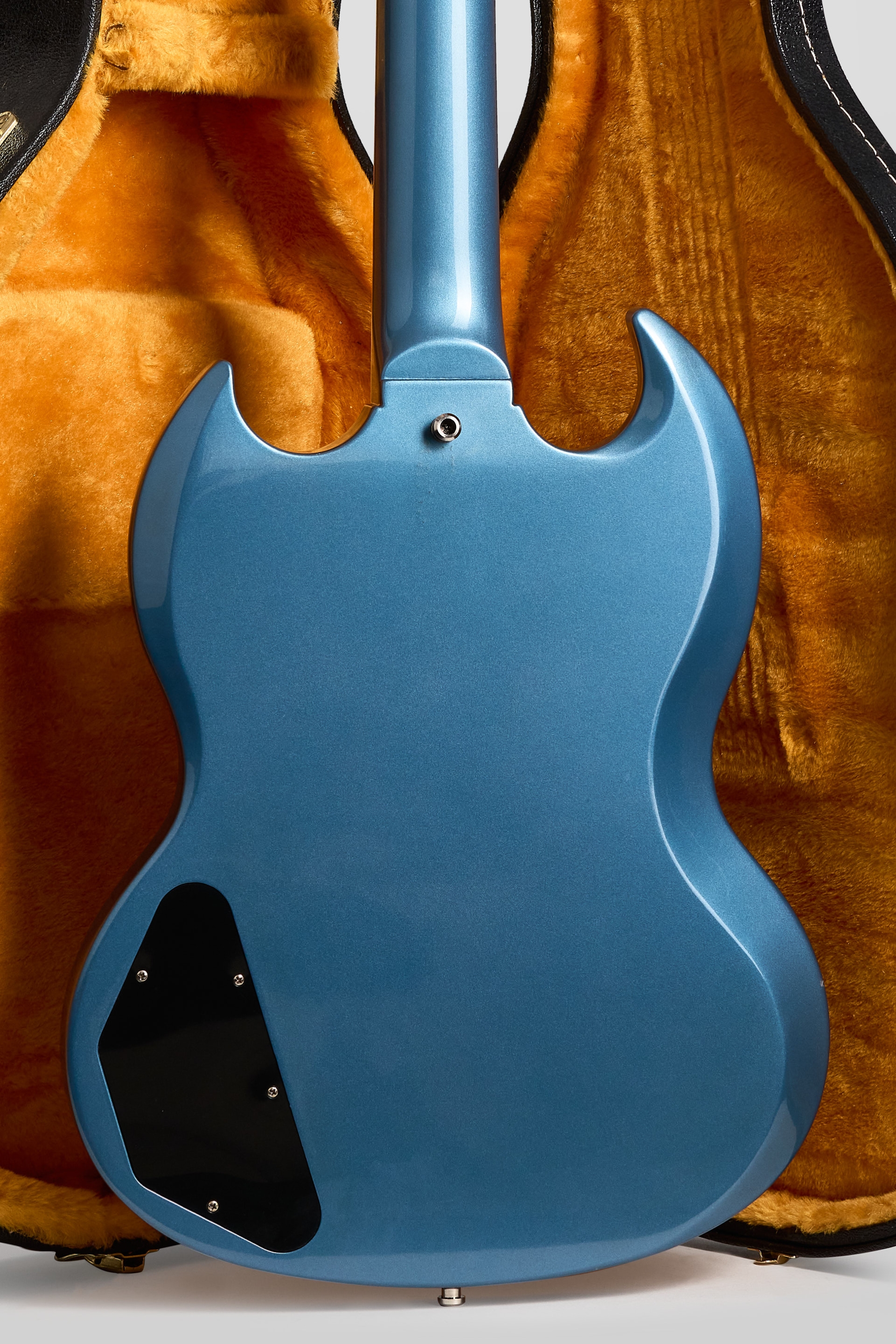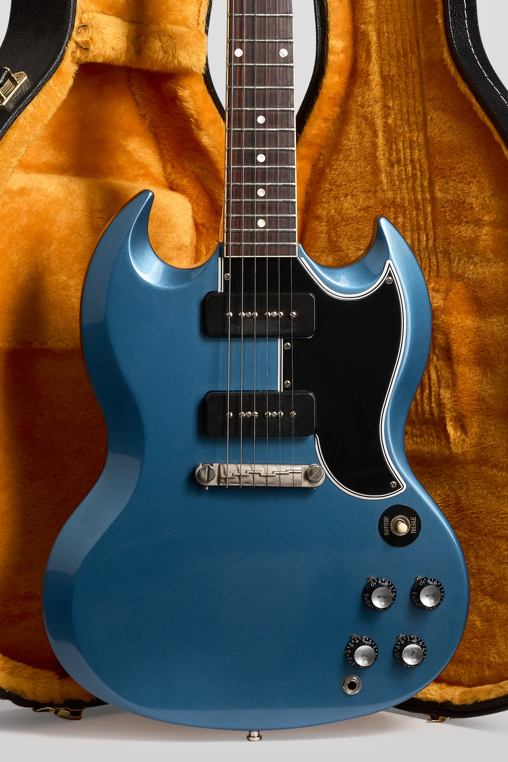 Hablamos de esta fantastica Gibson SG Special 1963 Reissue V.O.S del año 2020 en un Pelham Blue finish. El termino V.O.S se refiere a que mantuvieron punto por punto los vintage original specs.