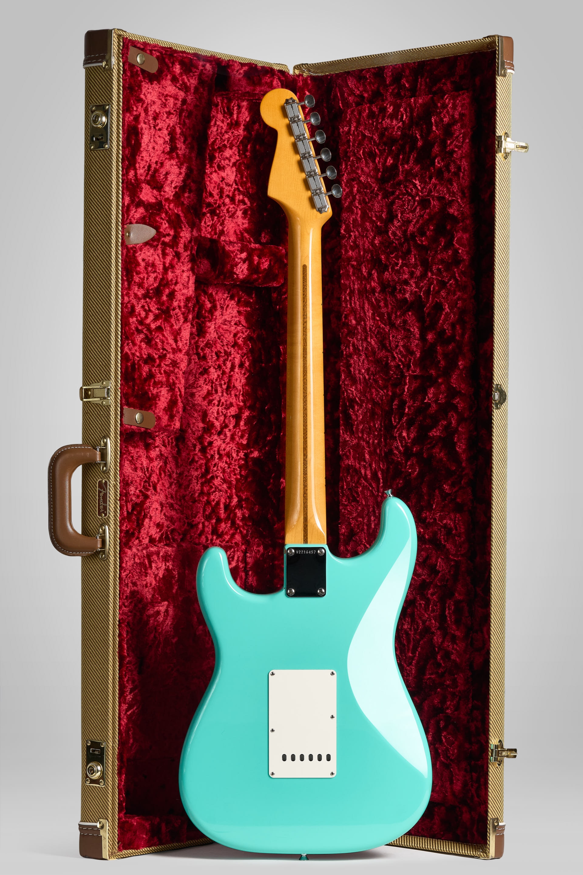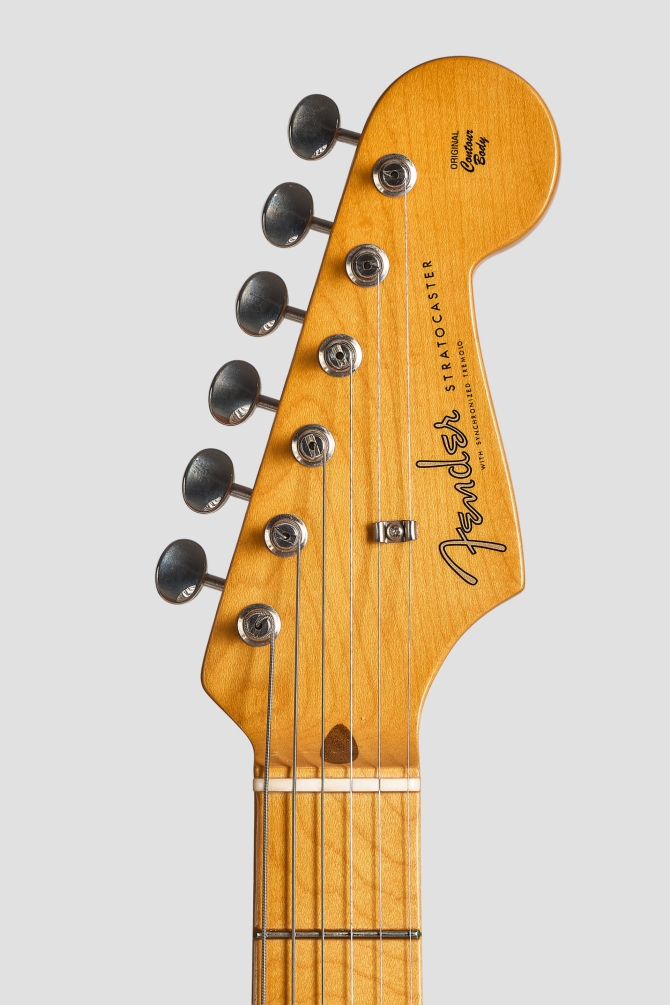La guitarra propone una construcción de Alder en el cuerpo con laca nitro, un mango de Maple con un radio de 7.25” y un perfil soft ‘V’. En los micrófonos tenemos tres Pure Vintage ‘57 sonando con el carácter de una Strat 50’s.