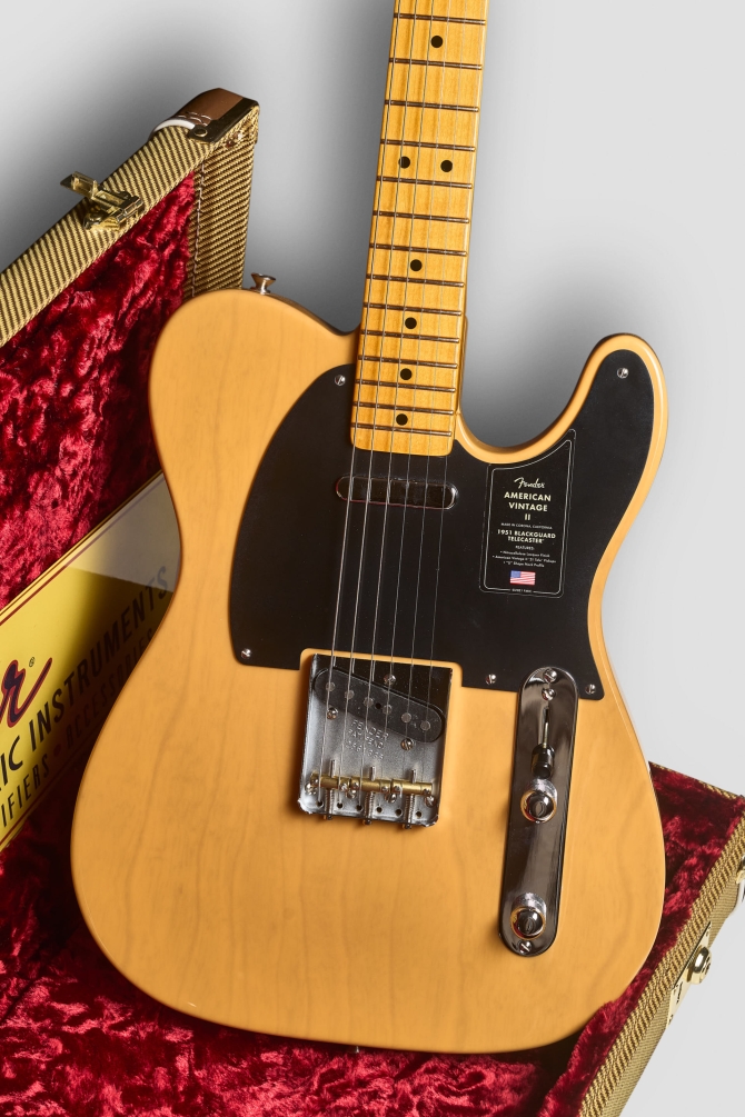 Fender decide volver a las raíces con la Telecaster American Vintage II '51 reissue. Una gran edición del año 2025 con una construcción clásica de Ash en el cuerpo pintado con nitrocelulosa en un Butterscotch finish, un mango de Maple con cómodo perfil en 'D', radio de 7.25" acompañado de 21 trastes 'vintage-tall'.