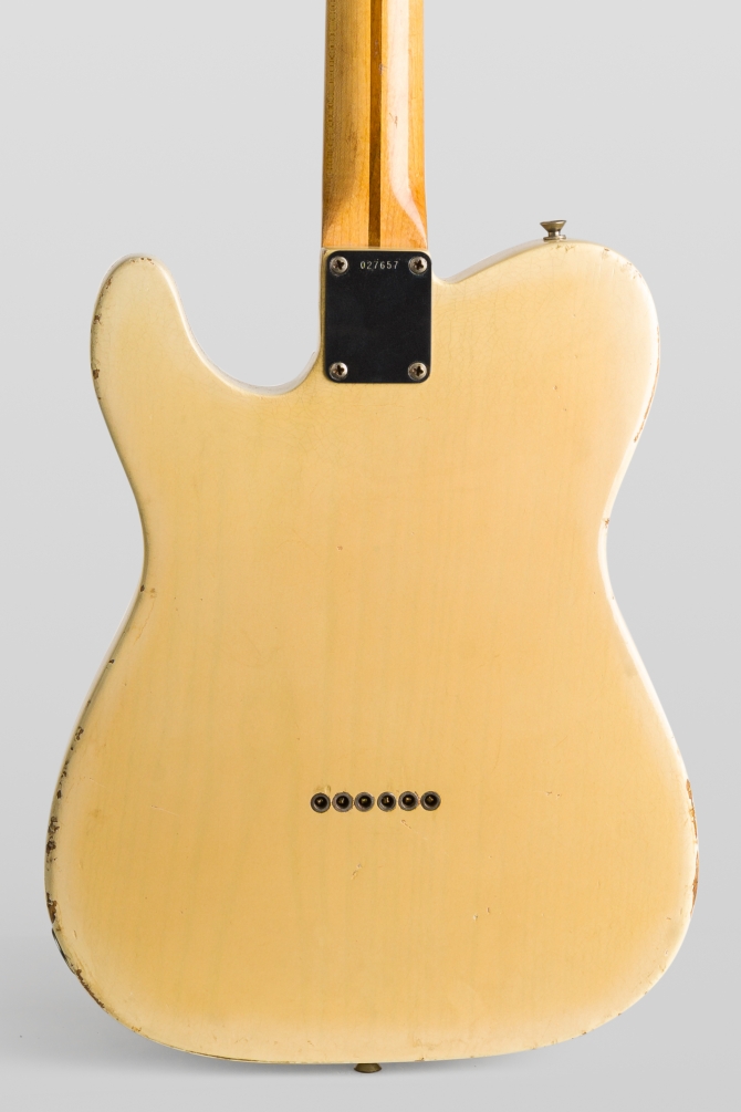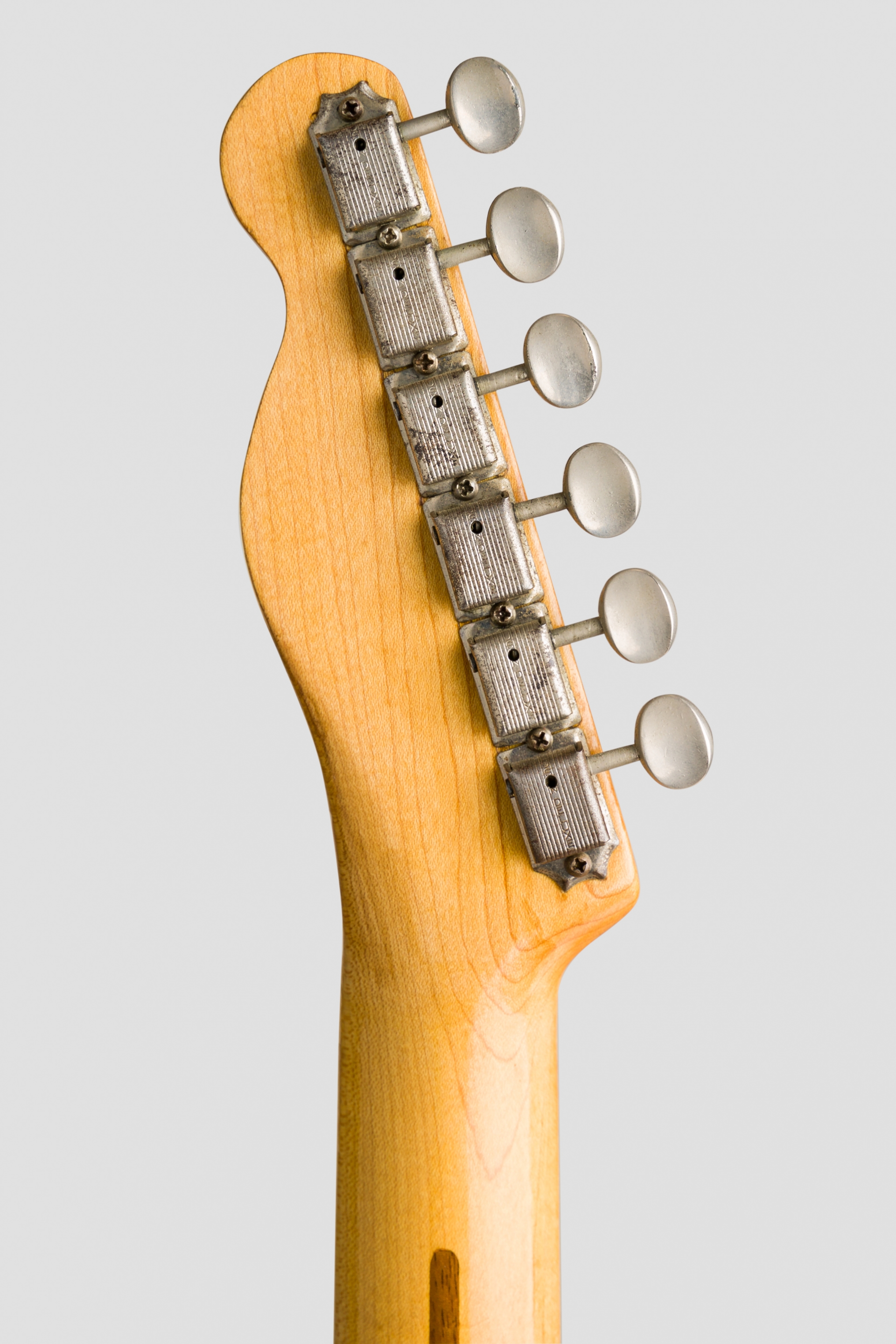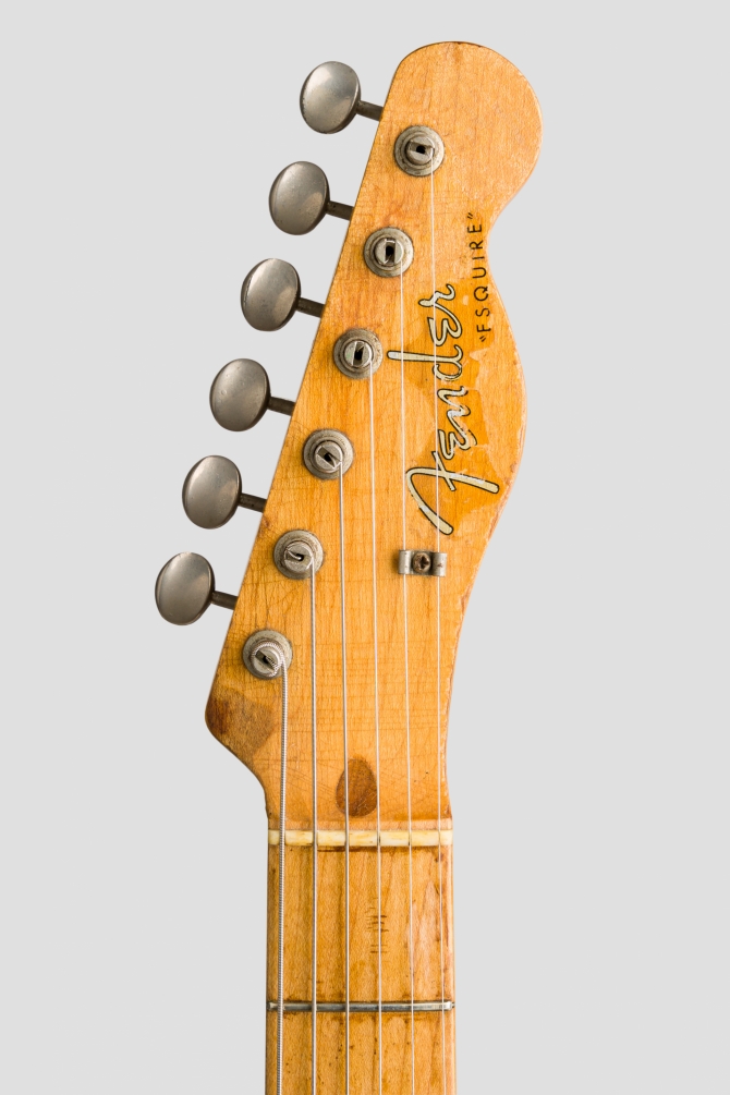 La Esquire '58 muestra las típicas características de este periodo de fabricación especifico, incluyendo el single-ply-white-plastic-pickguard, que ya era una característica estandard desde 1955, y el antiguo logo-decal. El cuerpo de Ash bien granulado y mango tiene un pro-re-finished Blonde hecho por Marc Jenny en MJT. El único finish original que podemos observar se encuentra en la parte delantera del headstock.